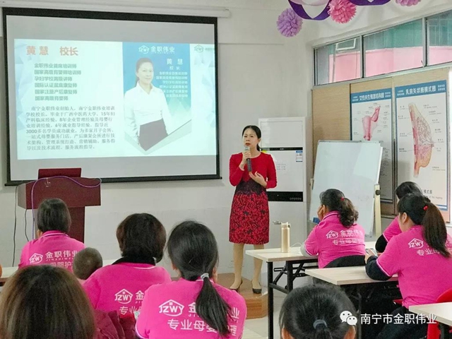 南寧金職偉業職業培訓學校黃慧校長表示,學校坐落在南寧市青秀區長堽路72號,提供高級母乳喂養指導師、小兒推拿師、產后康復師、高級母嬰護理師、高級育嬰師以及更多母嬰行業類必備課程。感謝學員們選擇到南寧金職偉業學習,并表示學校會為學員推薦就業平臺和保駕護航,希望全體學員們能增強自身能力,收獲友誼,收獲事業。