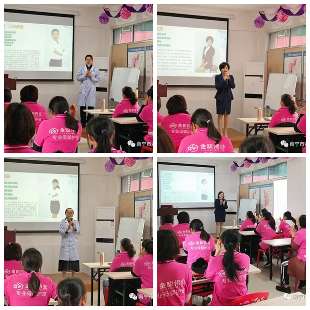 2018年11月20日上午,南寧市金職偉業職業培訓學校第13期產后康復師班、18期母嬰護理師班和21期母乳喂養指導師班隆重開班。