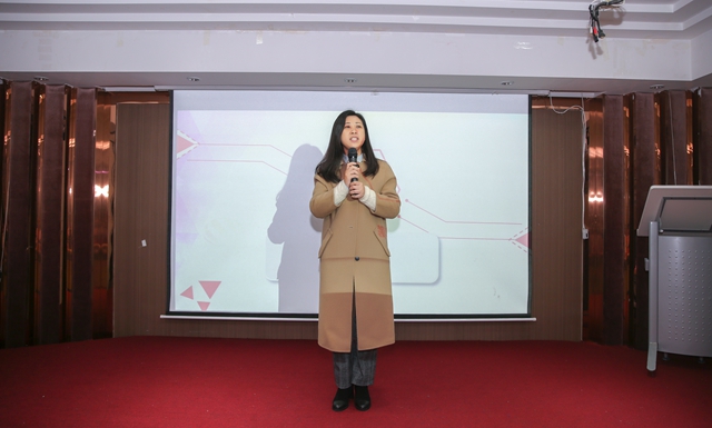 典禮伊始,由金職偉業董事長彭英女士致辭。彭董首先對雨花區人社局領導的蒞臨表示衷心感謝,對學員姐妹們的遠道而來表示熱烈歡迎。她表示,姐妹們克服困難,走進金職偉業學校,是明智的選擇,而金職偉業必定不辜負大家的信任;常言道“千金在手,不如一技傍身”,祝福學員姐妹們今后在平凡的崗位上創造不平凡的人生。