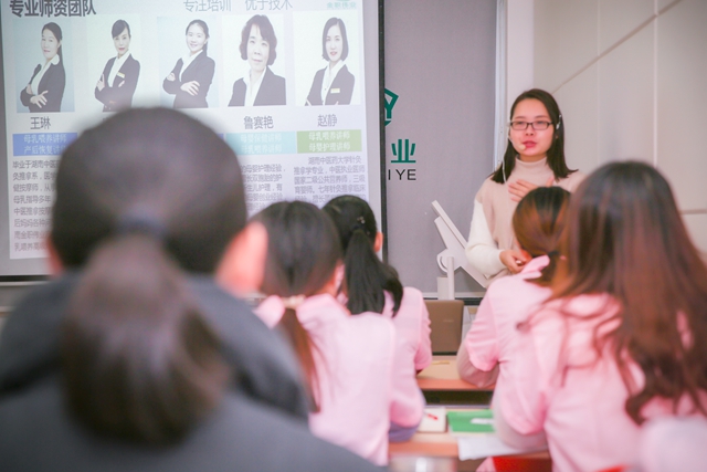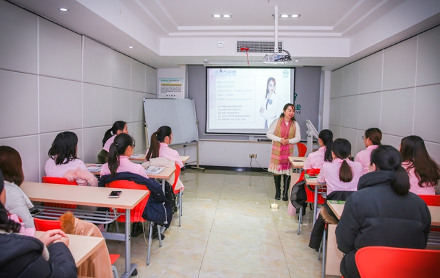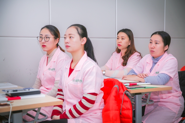 一開場,運營總經理黃娟女士先為學員們分析了小兒推拿的市場前景,堅定學員學習的信心,并重點介紹了金職偉業“前店后院”、“產學研一體化”的模式,讓學員了解金職偉業。黃總表示,學員的學習項目均可在金職偉業的直營門店金嬰麗人找到對應的就業崗位,方便了解工作職能以及就業前景。最后,黃總提出了3點學習技巧,并祝福學員們都能學有所成。