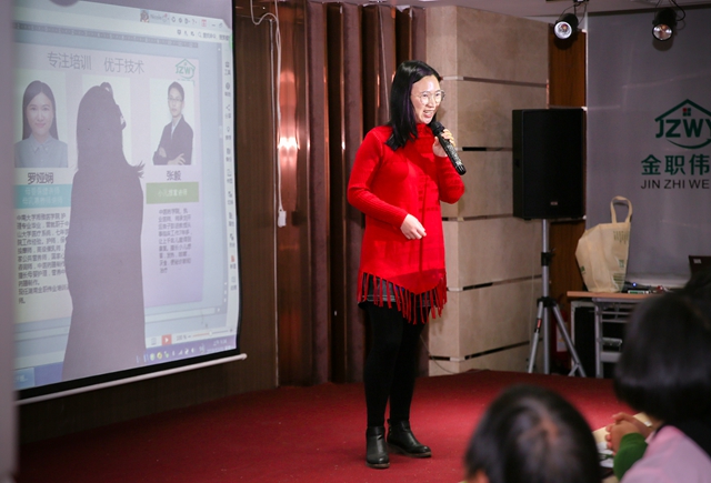 金職偉業(yè)培訓(xùn)學(xué)校執(zhí)行校長陳波出席了開班典禮并致辭。她首先感謝學(xué)員姐妹們對金職偉業(yè)的信任,并介紹了自己的從業(yè)經(jīng)歷。她表示金職偉業(yè)擁有專業(yè)的師資團隊、完整的培訓(xùn)體系,學(xué)員們可以在此感受到專業(yè)的職業(yè)教育。