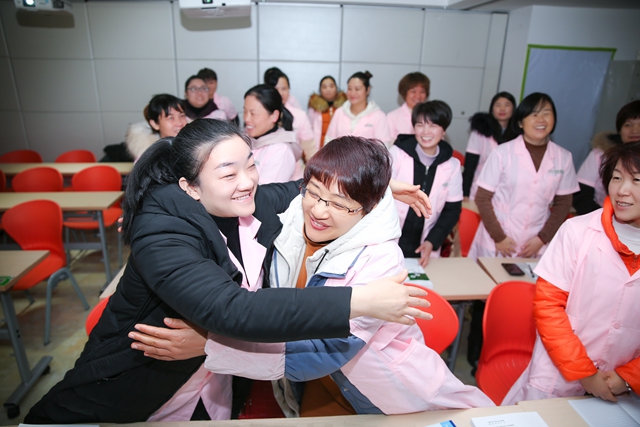 “我們心理咨詢師經(jīng)常說,拉進(jìn)人與人之間距離的最好方式就是擁抱。”在陳波校長的提議下,學(xué)員們紛紛起立,擁抱身邊的姐妹,頓時,教室里充滿了溫暖的氛圍,令人動容。