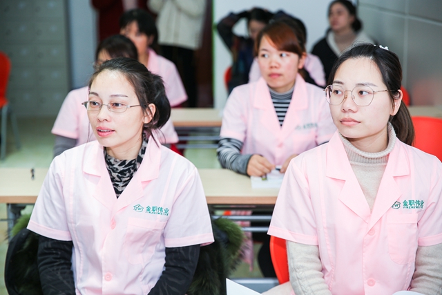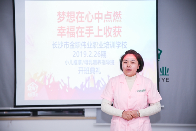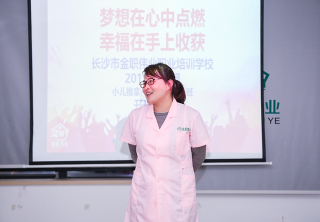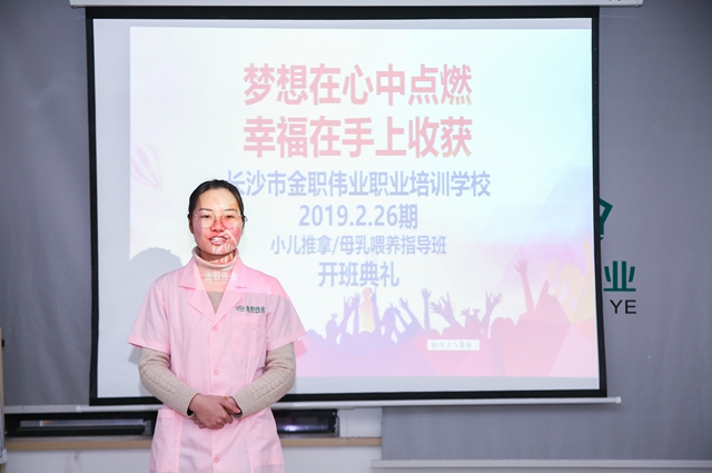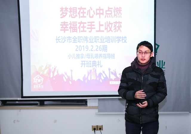 此次開(kāi)班典禮由金職偉業(yè)培訓(xùn)學(xué)校教務(wù)班主任劉青青主持,金職偉業(yè)執(zhí)行校長(zhǎng)陳波、小兒推拿主講老師張毅、催乳師班班主任熊燦玲等老師出席。