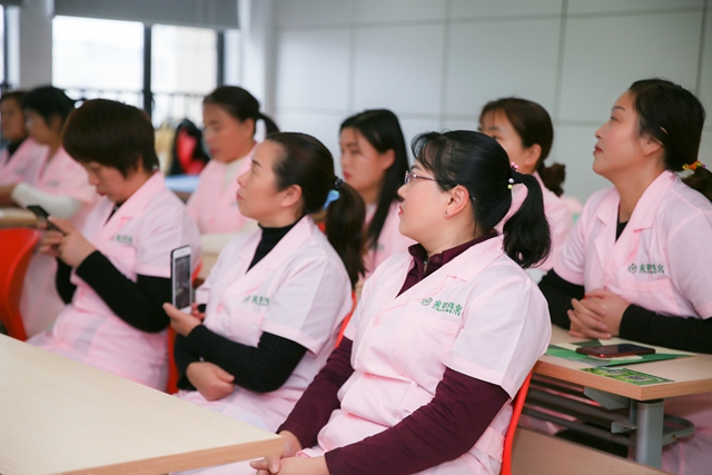 金職偉業月嫂講師魯賽艷則為學員送上兩句話,第一:相信自己,把心態放好,克服自己,克服困難認真努力,出彩自己,不斷提升自己;第二:不要做一位活著的植物人,要不斷汲取經驗,取其精華,掌握新技能。最后魯賽艷老師承諾之后也會和學員保持聯系,提供幫助。