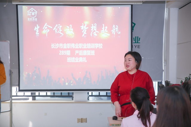 此次結(jié)業(yè)典禮由金職偉業(yè)就業(yè)主管閆文杰老師主持,金職偉業(yè)運(yùn)營總監(jiān)黃娟、金職偉業(yè)產(chǎn)后康復(fù)講師王琳出席并致辭。