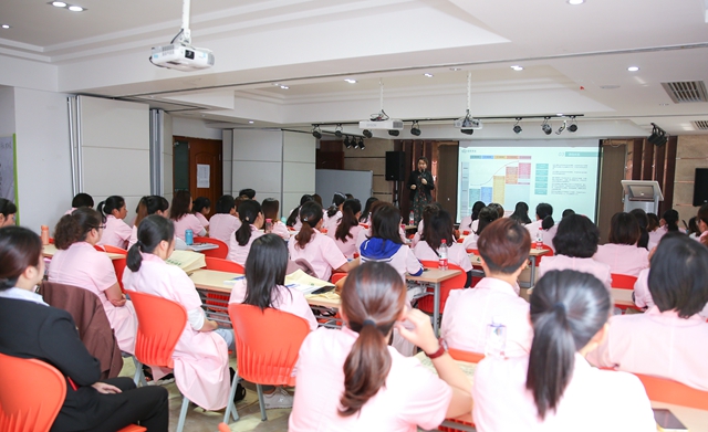 “我來自山西臨汾”、“我來自江西萍鄉”……來自五湖四海的學員紛紛主動上臺分享學習初衷。此次班級中還有一位懷孕7個月的準媽媽,她叫陳燕飛,為了護理好自己的寶寶來學習。聽完她的分享后,學員們紛紛為這位孕媽媽豎起大拇指。