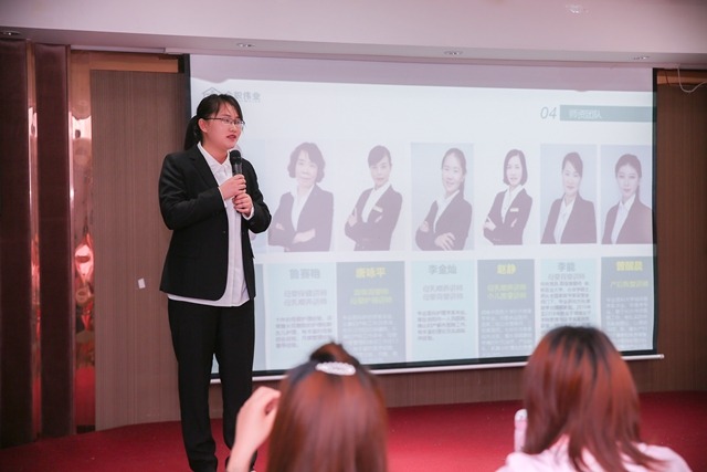 金職偉業運營總監黃娟首先介紹了自身從業經驗,從國企辭職后一直從事教育事業,希望學員如她一樣堅定在母嬰行業,之后她學員介紹了母嬰行業的市場前景二胎政策的開放加上人口老齡化的社會結構,讓母嬰行業的優勢凸顯,并表示金職偉業作為湖南省產后康復服務標準制定單位,擁有自己研發的教程以及專業的課程體系。最后她希望學員們都在金職偉業收獲專業技能,在母嬰行業實現人生價值。