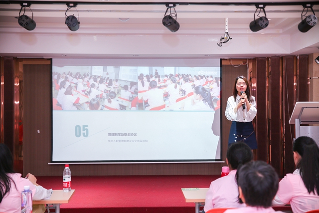 在主講老師介紹完相關課程安排后,教務班主任劉青青老師則為大家介紹教務制度,希望學員能夠遵守制度,營造融洽的學習氛圍。