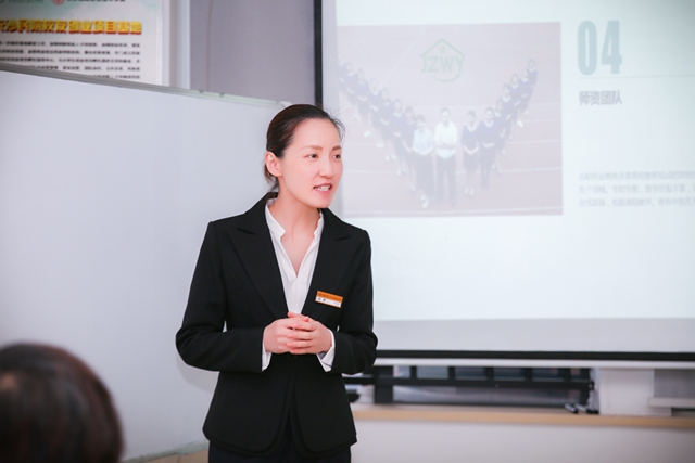 執行校長蘇瓊首先感謝學員們選擇金職偉業、信任金職偉業,接著她為學員們介紹下金職偉業的組織架構,金職偉業是集母嬰服務門店、母嬰職業培訓學校、創業支持為一體的綜合性公司,能夠更好地為學員提供專業的培訓以及實習機會。她承諾老師會用心教導大家,讓大家擁有一項職業技能,也希望學員們能夠在學習期間扎實基礎,在實習期間深入了解,多學習、多練習,讓自己成為一名專業小兒推拿師。