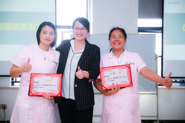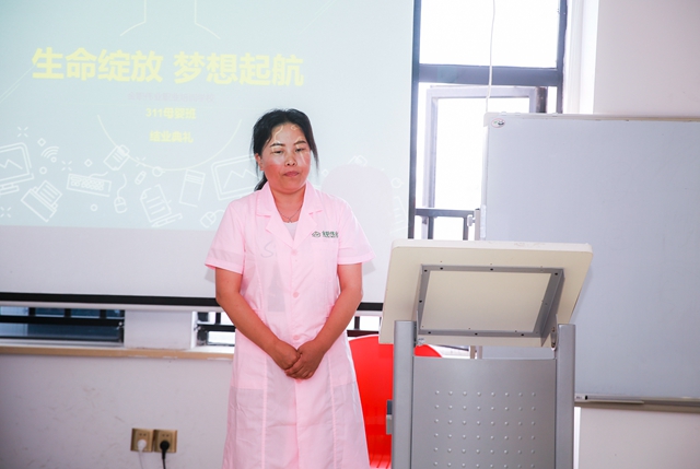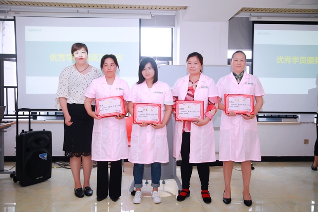 緊接著,優秀學員評獎開始。出于綜合考量,學員劉娟、李雪梅、吳麗枚、朱金云獲此殊榮。四人先后感謝了學校與老師,她們表示自己非常幸運能進入如此正能量的班級學習,不僅收獲了專業知識,還有堅貞友誼。最后四人祝福所有人都能夠完美就業,實現自我價值。