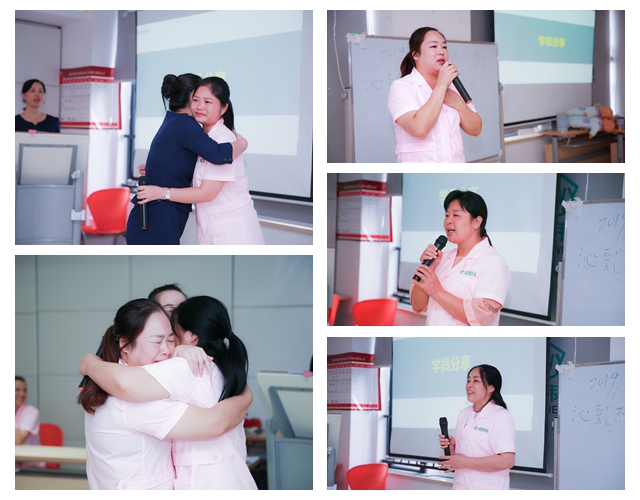 見此情景,班主任熊老師提議學員們擁抱身邊的同學老師。學員們深情擁抱,回憶起過往的點點滴滴,眼眶濕潤,即便如此臉上也充滿著幸福的笑容,因為此次的離別標志著她們正式踏入了母嬰行業。