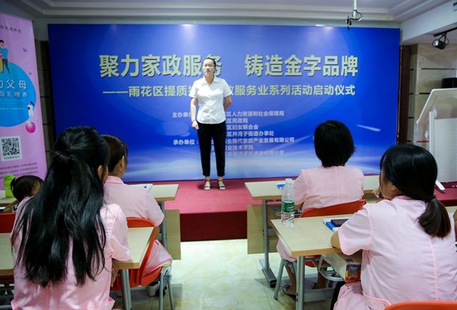 月嫂主講老師李能首先向學員們介紹了自己的教學模式,著重情景模擬,承諾會帶給大家生動不枯燥的教學體驗。隨后,肯定了大家選擇家政行業是明智的選擇,給即將邁入母嬰行業的學員提出了三點建議:一是不忘初心,堅持為自己的目標奮斗;二是在課堂中有不懂的問題要隨時提出來,老師一定知無不言,言無不盡;三是既然踏入了母嬰行業的門,那就給自己定一個高一點的目標,帶著愛心,耐心,責任心和細心,沿著這條路一直踏踏實實走下去。最后祝福學員姐妹能在母嬰行業大展身手,實現自己的價值。