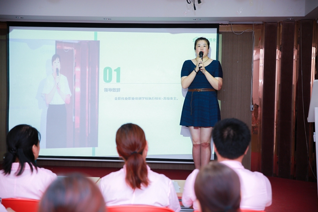 校長蘇瓊首先為大家介紹了金職偉業(yè)的組織架構(gòu),并表示金職偉業(yè)擁有專業(yè)的教學(xué)體系、優(yōu)美的環(huán)境,確保學(xué)員們在學(xué)校能夠?qū)P膶W(xué)習(xí),在工作中能夠靈活運(yùn)用所學(xué)知識,最后她表示金職偉業(yè)所有師資會傾囊相授,希望學(xué)員們好好學(xué)習(xí),天天向上。