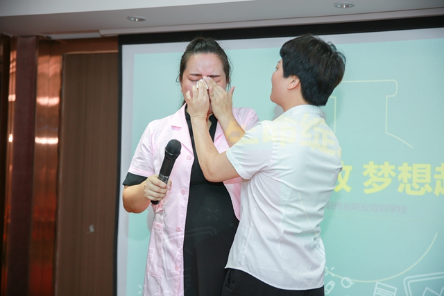 “因為年齡比較大,我心里是有些自卑的,我只有更加努力地學習,不斷練手法,咬牙堅持下去?,F在我已經學了母嬰護理、母乳喂養指導、產后康復,下一步我將學習小兒推拿課程,我相信在老師的耐心指導下,我可以更順利地完成下一門課程。”王真倩動情地分享道。