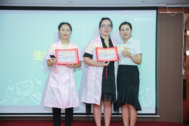 每一期班級也不乏金職偉業“創業合伙人”的身影。本期班級學員有金職偉業龍山校區負責人李亞琴,還有金嬰麗人產后康復中心桑植店負責人王真倩、葉秀珍。