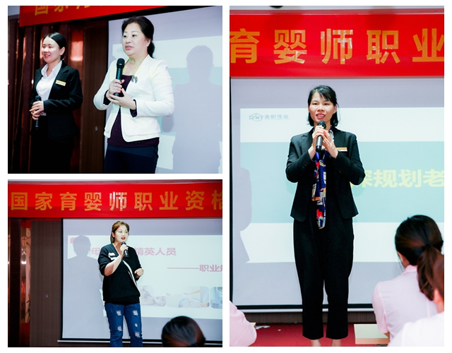 此次結業典禮由班主任劉小慧老師主持,金職偉業總裁潘建明、催乳師指導主講老師李金燦、月嫂講師陳蕾瓊、市場部資深職業規劃老師王巧萃、招商運營資深指導老師唐中梅出席并致辭。