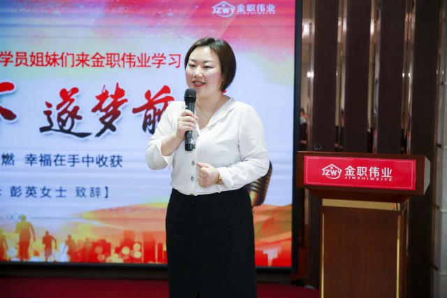 董事長彭英首先對學員們的到來表示熱烈歡迎,“很感謝學員們能夠在眾多培訓企業中選擇金職偉業。”彭總表示,在這種特殊的情況下,學員們還能堅持來學習十分不易,金職偉業一定會全力保障學員健康。也希望學員們能夠把握當下,逐夢前行,在金職偉業教師團隊的悉心指導下,掌握更多的技能,實現穩定就業、創業。