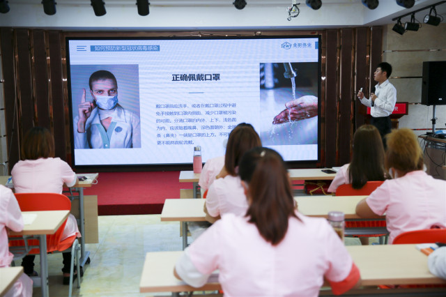分享結束后,小兒推拿講師繆凌志給學員們進行了“開班第一課”《新型冠狀病毒感染肺炎預防知識》,依次詳細講述了“什么是冠狀病毒”、“新型冠狀病毒感染患者的臨床表現”、“此次疫情的病例特點”、“如何預防新型冠狀病毒感染”四個板塊,引領學員們正確認識冠狀病毒,加強個人防護意識,保障學員健康與安全。