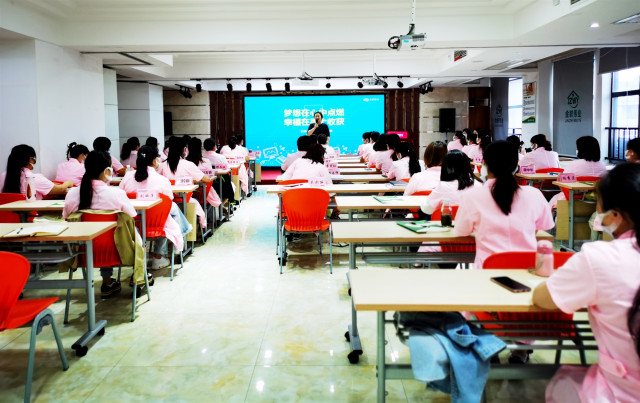 作為金職偉業職業培訓學校的老學員黃蘭蘭也積極上臺分享自己的感言:“她說自己從生產線的一名操作工到文員,七年的職業工作,讓她一無所獲。在心儀的職業崗位面前,沒有好學歷作為敲門磚讓她感到深深的無力和自卑。來金職偉業培訓,不僅僅是覺得母嬰行業市場前景好,而是在這里她樹立了正確的職業觀、人生觀和價值觀。在老師的幫助下她克服了自卑心理,她要靠自己勤勞的雙手打造出人生的新天地”。