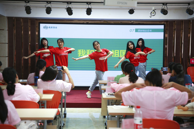 典禮伊始,學員們為大家帶來了精彩的開場表演。自編自唱的原創歌曲、《我們的紀念》,歌聲真切,句句都飽含對金職偉業的情誼及對老師、學員的不舍。舞蹈《寶貝,寶貝》、《我和我的祖國》,舞姿動感活潑,深情投入的她們將在每個人心中留下她們最美的樣子。