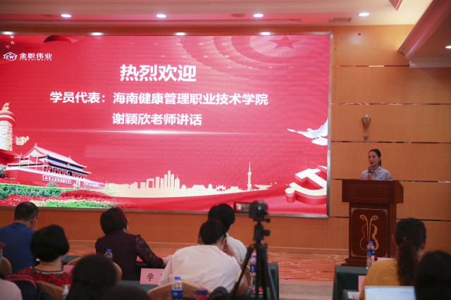 海南健康管理職業技術學院老師謝穎欣,作為學員代表上臺分享了自己的感受。她表示,“幼兒照護職業技能等級證書,對于早教、護理、幼教等專業的學生來說是一個難得的契機,希望這幾天的學習不管是對幼兒照護證書、職業技能和教學內容都能有新的認識和理解,返校后能為1+X教育注入新的活力,走上新的征程,為學生鋪就更廣闊的就業路。”