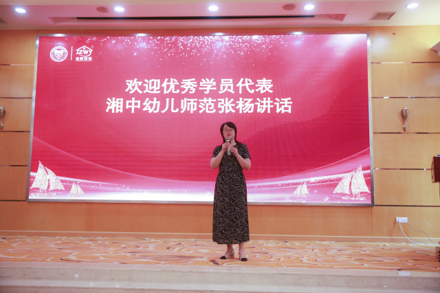 緊接著,湘中幼兒師范高等專科學校老師張楊,作為優秀學員代表上臺進行發言。“通過這幾天的培訓,收獲很大。不僅掌握了幼兒照護領域的專業知識技能,拿到了師資培訓證書及考評員證,還收獲了珍貴的師生、同窗情誼。”她表示很期待1+x幼兒照護課程體系的完美落地,希望在今后與各位專家老師一起踐行、夯實幼兒照護這個朝陽事業。