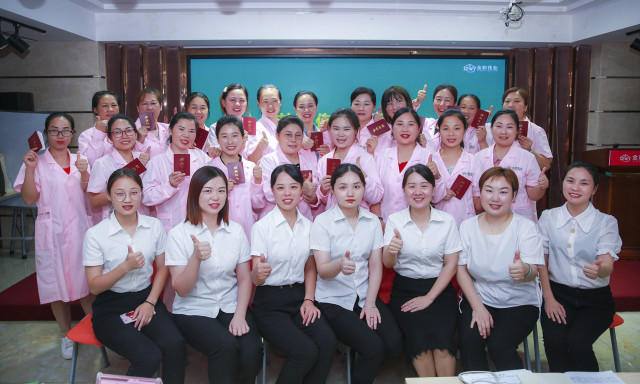 8月6日下午14時,長沙金職偉業職業培訓學校五教室內座無虛席,20余名學員們著統一的粉色學員裝、妝容精致,隆重開啟自己的結業典禮。典禮現場氛圍十分濃烈,感動與不舍的氣息彌漫著整個教室。