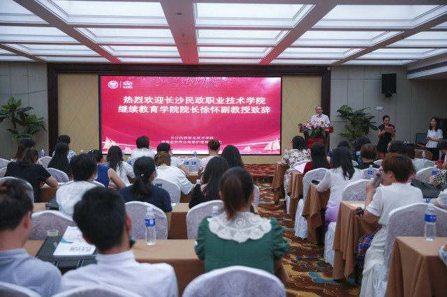 典禮伊始,長沙民政職業技術學院繼續教育學院院長徐懷發表講話。他講話中提到,“黨中央、國務院、教育部高度重視幼兒照護等社會服務人才緊缺領域的發展,幼兒照護領域職業技術技能顯現出廣闊的市場應用前景。”最后,他呼吁金職偉業與長沙民政職業技術學院在今后繼續深入合作,廣泛開展此類師資培訓,充分營造嚴謹好師、進取創新的幼兒照護領域學科發展精神。