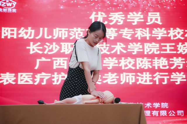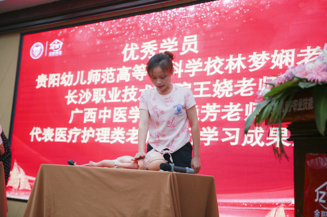 結業典禮上,漢川中等職業技術學校張曼老師、貴州幼兒高等師范學校林夢嫻老師、長沙職業技術學院王嬈老師、廣西中醫學校陳艷芳老師作為優秀學員代表進行考評演示,展示匯報這6天的學習成果。