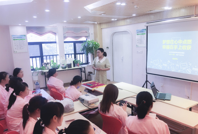 上午9時,413期一指私密班、414期產后康復班迎來開班典禮,來自湖南多地的學員匯聚一堂,共同開啟一場全新的產后康復、女性私密知識學習之旅。產后康復資深講師陳萬方、一指私密資深講師陳蕾瓊相繼上臺與學員見面,并送上學習寄語。典禮結束后,學員們分別去到各自的班級,開始屬于自己的產后康復或一指私密學習培訓之旅。