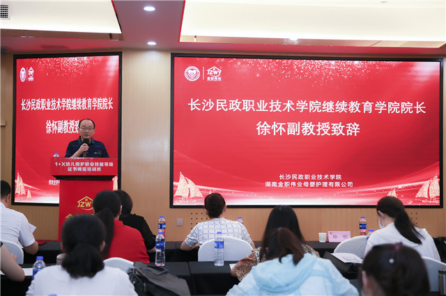 長沙民政職業技術學院繼續教育學院院長、民政部長沙基層民政干部培訓中心主任徐懷副教授發表致辭。他強調職業技能等級證書既是職業技能水平的憑證,也是對學習成果的認定,能促進資歷的跨領域、跨行業、跨地區的相互認可,與可從業人員職業資格準入制度對接。