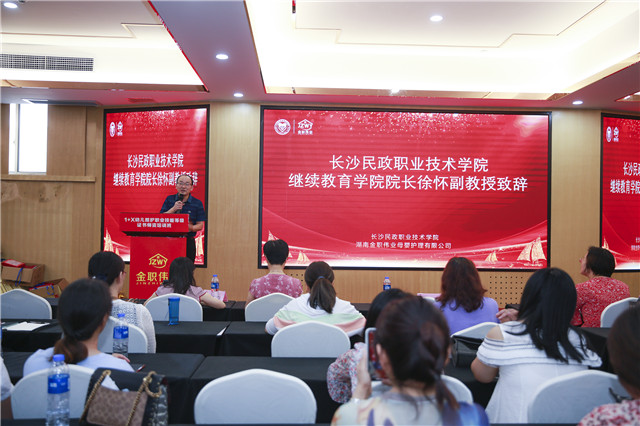 典禮伊始,長沙民政職業技術學院繼續教育學院院長徐懷發表講話。他強調幼兒照護領域發展前景廣闊,并表示金職偉業與長沙民政職業技術學院將繼續強強聯手,廣泛開展此類師資培訓,攜手開拓更高、更優、更廣闊的平臺,也希望與大家相約下一期的幼兒照護師資培訓,來共同探討、見證幼兒照護職業技能領域的發展。
