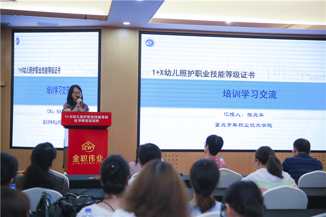 遼陽職業技術學院學前教育學院呂姝副院長、重慶青年職業技術學院學前教育學院張慶華院長就如何推動1+x幼兒照護職業技能等級證書的落地實施進行了匯報分享。