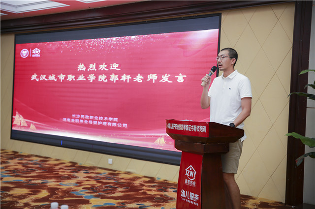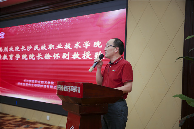 典禮伊始,長沙民政職業技術學院繼續教育學院院長徐懷發表講話。他呼吁金職偉業與長沙民政職業技術學院在今后繼續深入合作,廣泛開展此類師資培訓,充分營造嚴謹好師、進取創新的幼兒照護領域學科發展精神。