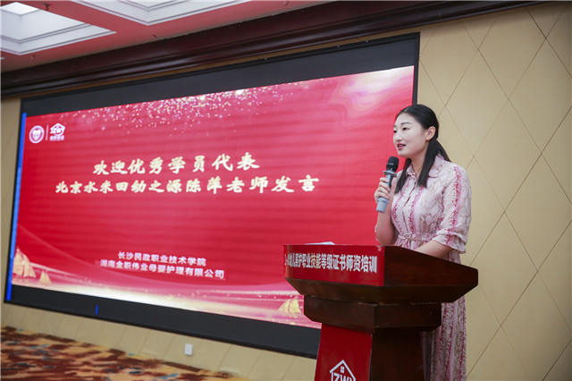 北京水米田幼之源陳萍老師作為優秀學員代表進行講話。她首先強調當下不負,未來不懼。