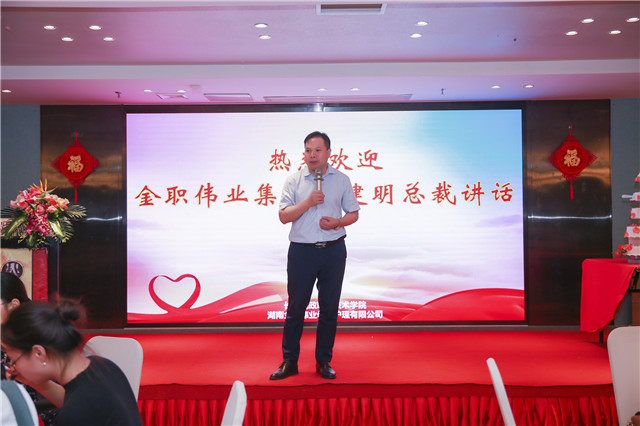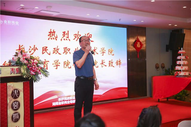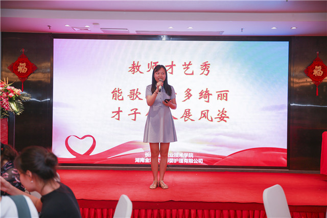 “師者如明燈,照亮人生路;師者如園丁,辛勤耕耘;師者如春雨,潤物無聲……”金職偉業董事長彭英率先唱響教師禮贊,為老師們送上節日祝詞,臺下瞬間掌聲雷動、經久不息。長沙民政職業技術學院繼續教育學院院長徐懷也上臺為在座的老師們,送上了節日的祝福。