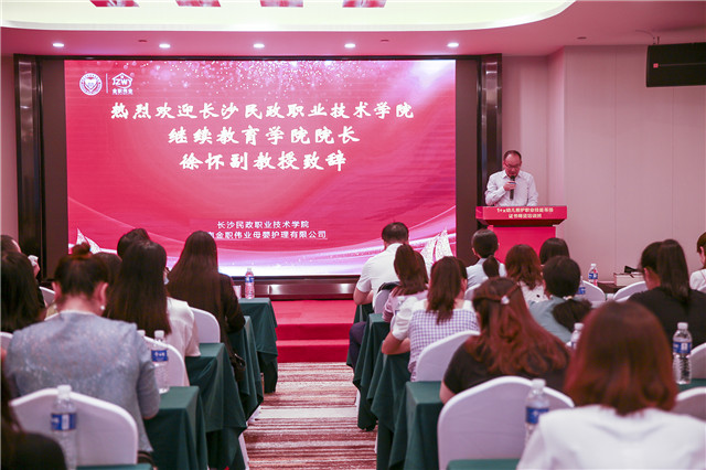 典禮伊始,長沙民政職業技術學院繼續教育學院院長徐懷發表致辭,首先,他對各位專家教授的精彩講解與傾心點評表示最衷心地感謝,同時提到,幼兒照護領域職業技術技能顯現出廣闊而深邃的市場應用前景,他呼吁湖南金職偉業與長沙民政職業技術學院繼續強強聯手,廣泛開展類似的師資培訓盛會,充分營造嚴謹好思、進取創新的幼兒照護領域學科發展精神。