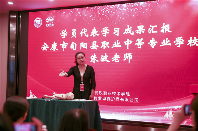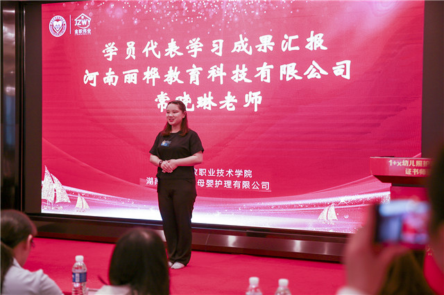 隨后,對表現優異的學員進行表彰,包頭職業技術學院王凡宇,濱州職業學院張盼海南衛生健康職業學院牛金花,杭州市人民職業學校張俊、高銳,河南麗樺教育科技有限公司吳欣樺,南寧市第四職業技術學阮玉立,泉州職業技術大學梁瑩,武漢市東西湖職業技術學校朱煥芝,湘潭天英職業技能培訓學校顏婷,獲得“優秀班干部”稱號。安徽省靈璧師范學校王玫,安康市旬陽縣職業中等專業學校朱波,安順城市服務職業學校陳艷,包頭職業技術學院王淑芳,成都市現代職業技術學校劉舒懋、安旭,滁州市應用技術學校王玲玲,撫州信息工程學校黎琴琴,廣西橫縣職業教育中心林明曉,桂林市興安師范學校劉永婷,海南衛生健康職業學院李虹,河南麗樺教育科技有限公司常曉琳、師曉想,河南省普惠托育發展中心張珈萌,河南衛生健康干部學院劉語涵,河南魚就是魚托育中心劉婷,黑龍江護理高等專科學校徐虹、劉慧,吉林師范大學遼源分院吳月,江蘇食品藥品職業技術學院顧陸倩,江西工業貿易職業技術學院高婷,寧夏職業技術學院王雪妮、王倩,上海健康醫學院姚曉嵐,深圳信息職業技術學院龔傳杰,石家莊工程技術學校李珊,石家莊幼兒師范高等專科學校霍習霞,天水市職業技術學校曲少杰,烏海職業技術學院孔賀鵬,西安醫學高等專科學校馬菊紅,襄陽市旅游服務學校樊有紅,營口職業技術學院孫天斌,云南文化藝術職業學院畢波,張北縣職教中心李璐,重慶市涪陵區職業教育中心陳學東,佛山市南海區第一職業技術學校周強,衡陽幼兒師范高等專科學校劉璐,葫蘆島市第一中等職業技術專業學校王旭漯河醫學高等專科學校殷婷,獲得“優秀學員”稱號。