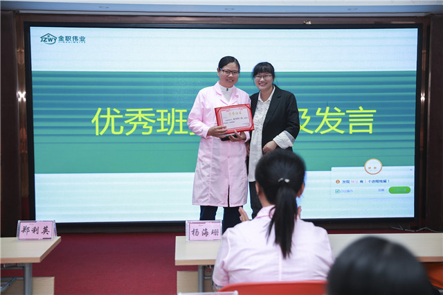 隨后,對認真負責的班干部及表現優異的學員進行表彰。姜玲麗榮獲“優秀班干部”稱號,朱玲、李英、繆航航、蔡國輝榮獲“優秀學員”稱號。