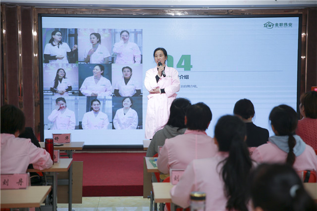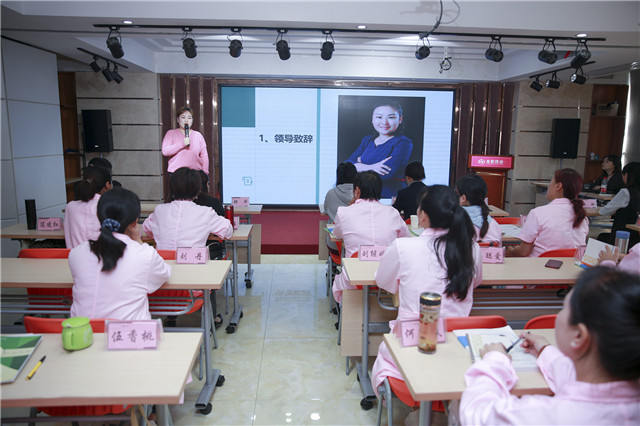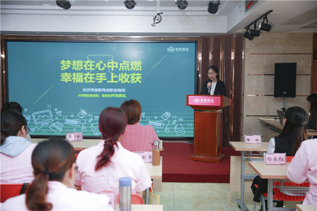 典禮伊始,教務主管閆文杰進行發言。她首先歡迎各位學員的到來,并感謝學員姐妹們對于金職偉業的信任。她表示金職偉業擁有專業的師資團隊、完整的培訓體系,希望學員們在培訓期間沉下心來學習,不斷提升自己。