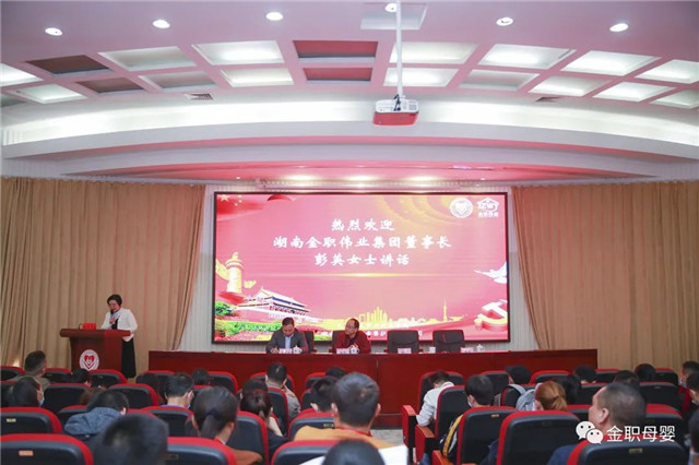 典禮由湖南省育嬰師協會會長、湖南金職偉業現代家庭產業發展有限公司總裁潘建明主持,長沙民政職業技術學院繼續教育學院院長徐懷,湖南金職偉業集團董事長、金職偉業商學院院長、卓越創業導師彭英等出席。