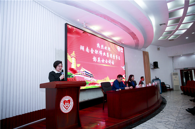 金職偉業(yè)董事長彭英發(fā)表講話,她強調(diào)金職偉業(yè)在今后將不遺余力推動“1+X幼兒照護”等級證書制度落地,為獲得X證書的學(xué)生搭建更多更廣的就業(yè)創(chuàng)業(yè)平臺,號召有條件有需求的企業(yè)多拿出一些資源對學(xué)生群體加強就業(yè)、創(chuàng)業(yè)扶持,幫助他們更好地發(fā)展。同時也呼吁在座每位老師能堅守幼兒照護的使命,在返校后積極培養(yǎng)學(xué)生。