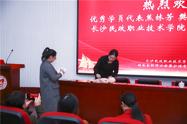此次典禮由江西省彭澤縣旅游工業(yè)中等專業(yè)學(xué)校方宏老師主持。長(zhǎng)沙民政職業(yè)技術(shù)學(xué)院繼續(xù)教育學(xué)院院長(zhǎng)孫鋒、醫(yī)學(xué)院教師賀麗春,長(zhǎng)沙快樂一娃兒童城堡創(chuàng)始人幼兒教育專家一娃,湖南省育嬰師協(xié)會(huì)會(huì)長(zhǎng)、湖南金職偉業(yè)集團(tuán)總裁潘建明,湖南金職偉業(yè)母嬰護(hù)理有限公司幼兒照護(hù)技術(shù)負(fù)責(zé)人李偲婧等出席。