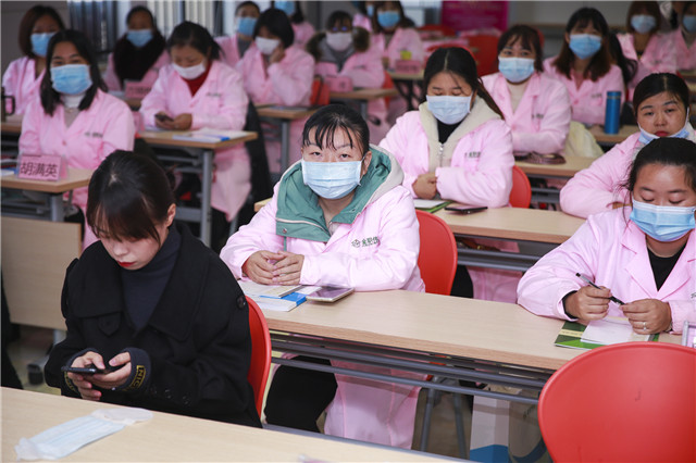 教務班主任劉青青老師為學員們講解學校的規章制度。其中包括教務制度、考勤管理、實習住宿等內容,她希望學員能盡快適應課堂,全身心地投入學習。