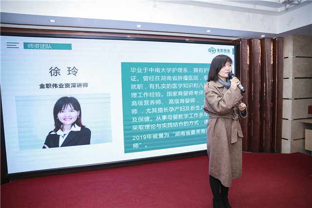 資深育嬰師講師徐玲作為師資代表上臺發言,她提到,此次培訓課程以理論+實操的形式進行,充分幫助大家將所學知識運用到實際操作中,增強記憶和動手能力。同時她也表示,“在課程中有任何不懂的問題,都可以咨詢老師,不用害怕,每位老師都將全力幫助大家。”