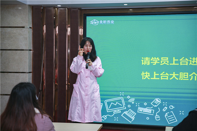 教務主管閆文杰老師首先進行發言,她對所有來此學習的學員表示歡迎,同時也感謝在座每位學員對金職偉業的信任,她表示,在接下來的10天學習時間里,授課老師、教務老師都將全程陪伴大家,共同進步,希望每位學員都能學有所獲,滿載而歸。