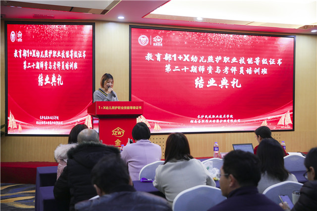 12月8日上午,教育部第三批“1+X幼兒照護(hù)”職業(yè)技能等級證書第二十期師資及考評員培訓(xùn)班結(jié)業(yè)典禮在湖南長沙隆重舉行。來自全國各地的七十余名老師、專家齊聚于此,共同探討嬰幼兒照護(hù)事業(yè)的未來發(fā)展前景。