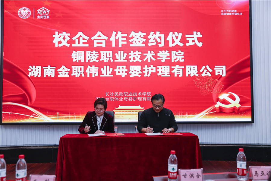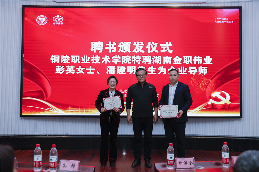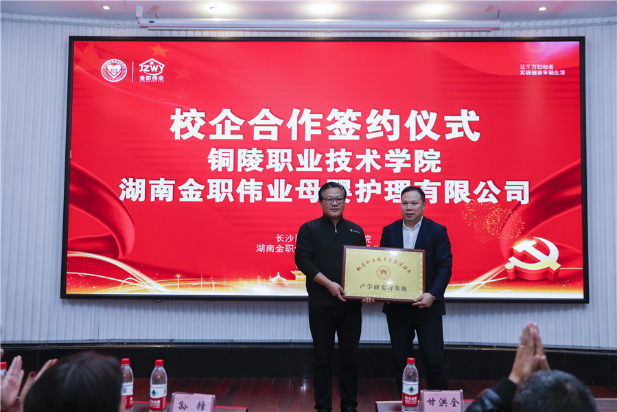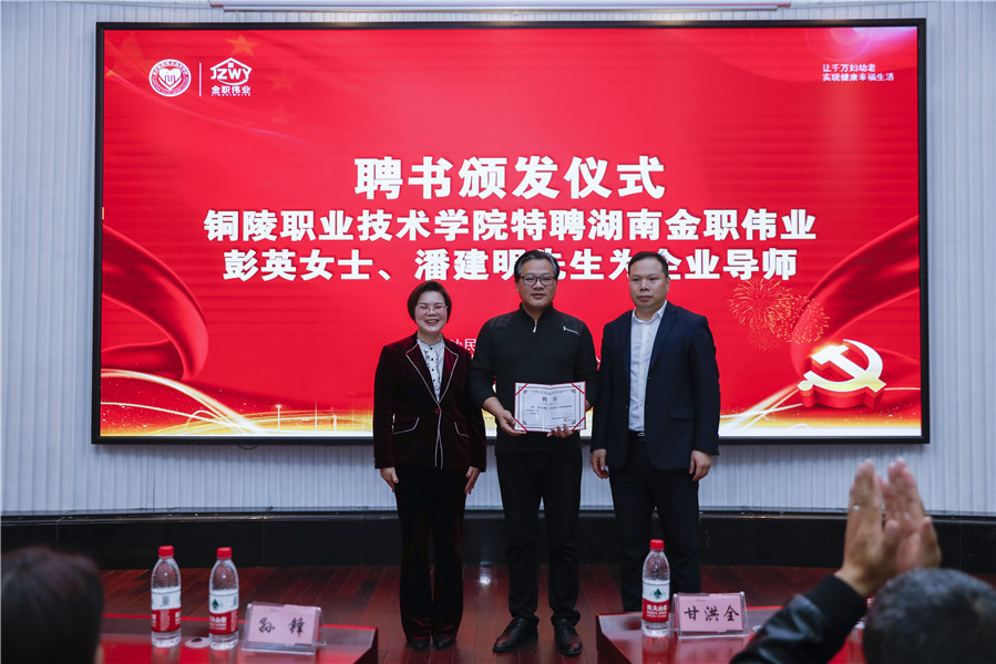 值得一提的是,典禮現(xiàn)場,銅陵職業(yè)技術(shù)學院與金職偉業(yè)簽定校企合作戰(zhàn)略協(xié)議,銅陵職業(yè)技術(shù)學院授予金職偉業(yè)“產(chǎn)學研實習基地”牌匾,同時為金職偉業(yè)董事長彭英、總經(jīng)理潘建明頒發(fā)“企業(yè)導師”聘書,此外,金職偉業(yè)也聘請銅陵職業(yè)技術(shù)學院陳樹副教授為“1+X幼兒照核心項目專家”。