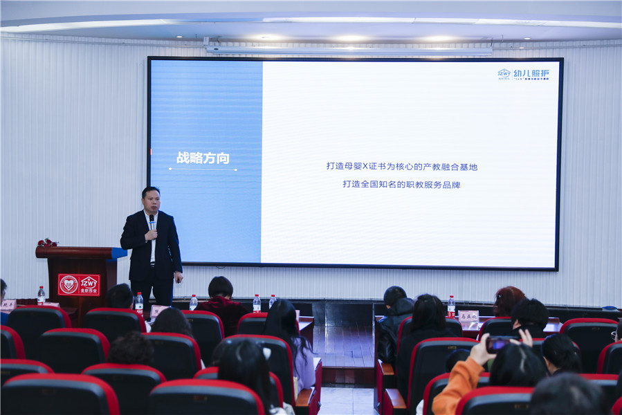 湖南金職偉業(yè)集團董事長彭英發(fā)表講話,她首先感謝教育部的大好政策,讓金職偉業(yè)能夠入圍第三批1+X職業(yè)教育培訓評價組織,同時對各位專家教授從全國各地奔赴長沙參與此次培訓表示感謝。隨后,她提到,金職偉業(yè)將借助1+X平臺,不遺余力地完善、創(chuàng)新幼兒照護領(lǐng)域的標準、課程、服務、教材體系,并積極落地‘1+X’幼兒照護課程實訓基地的建設。“希望各位專家、老師能積極推動幼兒照護事業(yè)的落地實施,成為“1+X”幼兒照護職業(yè)技能等級證書的傳播者,培養(yǎng)出更多高素質(zhì)幼教人才。”