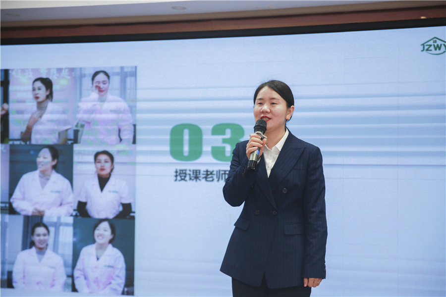 隨后,外聯部經理蘇瓊介紹了公司情況,向學員們展示了公司的整體實力和培訓就業“一條龍”服務。“大家在長沙市金職偉業培訓學校學習后,可以去往門店進行實習就業,如果有需要創業支持的小伙伴,我們公司也可以為大家提供加盟服務”,接著,她對學員們提出培訓要求,“大家上課一定要每天按時簽到,勤做筆記,最后,祝大家生活愉快,學習順利,學有所獲!”